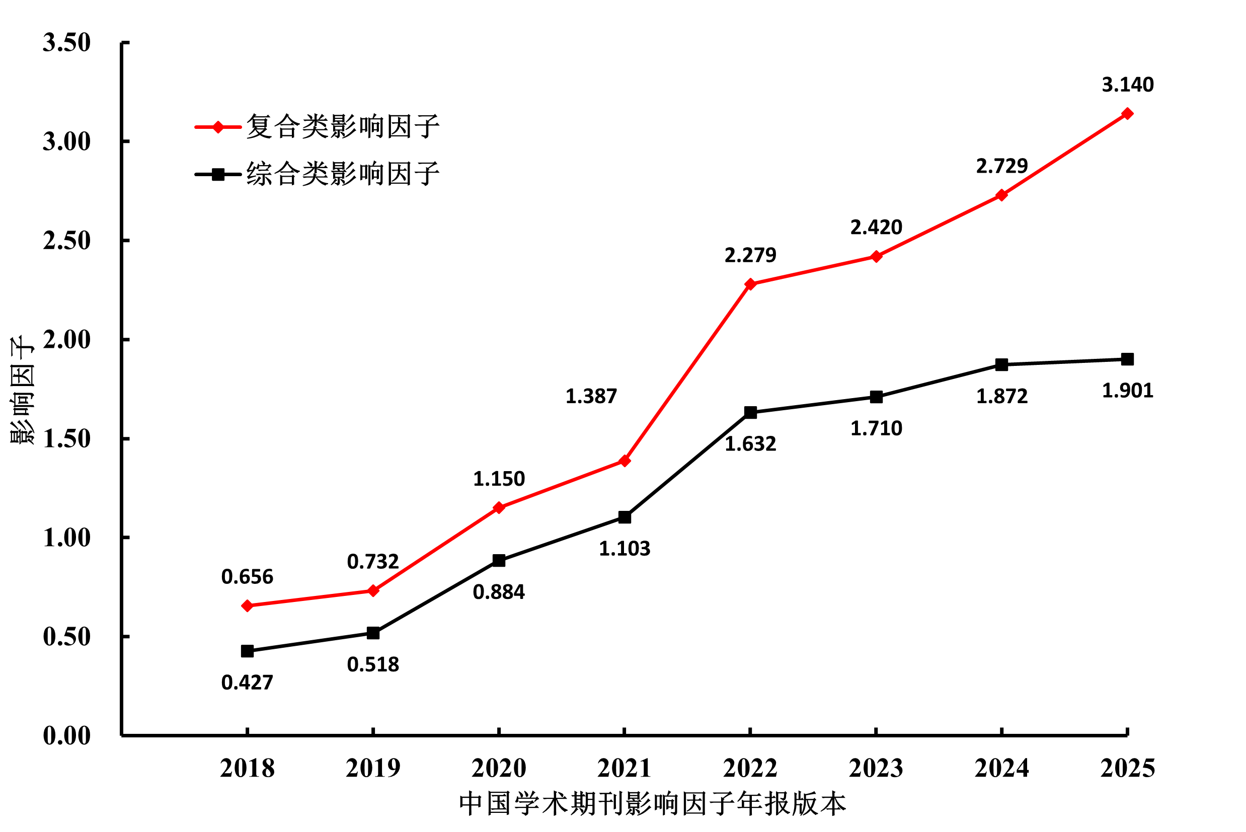 在收录的农业科学综合学科领域117种期刊中,《河南农业大学学报》连续4年位居Q1区。复合类影响因子和综合类影响因子等各项指标均持续稳步提升。其中,2025版复合类影响因子为3.140,相较上一年提高15.06%;综合类影响因子为1.901,相较上一年提高1.54%。
