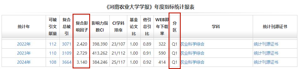 2025版《中国学术期刊影响因子年报》发布,《河南农业大学学报》连续4年位居Q1区